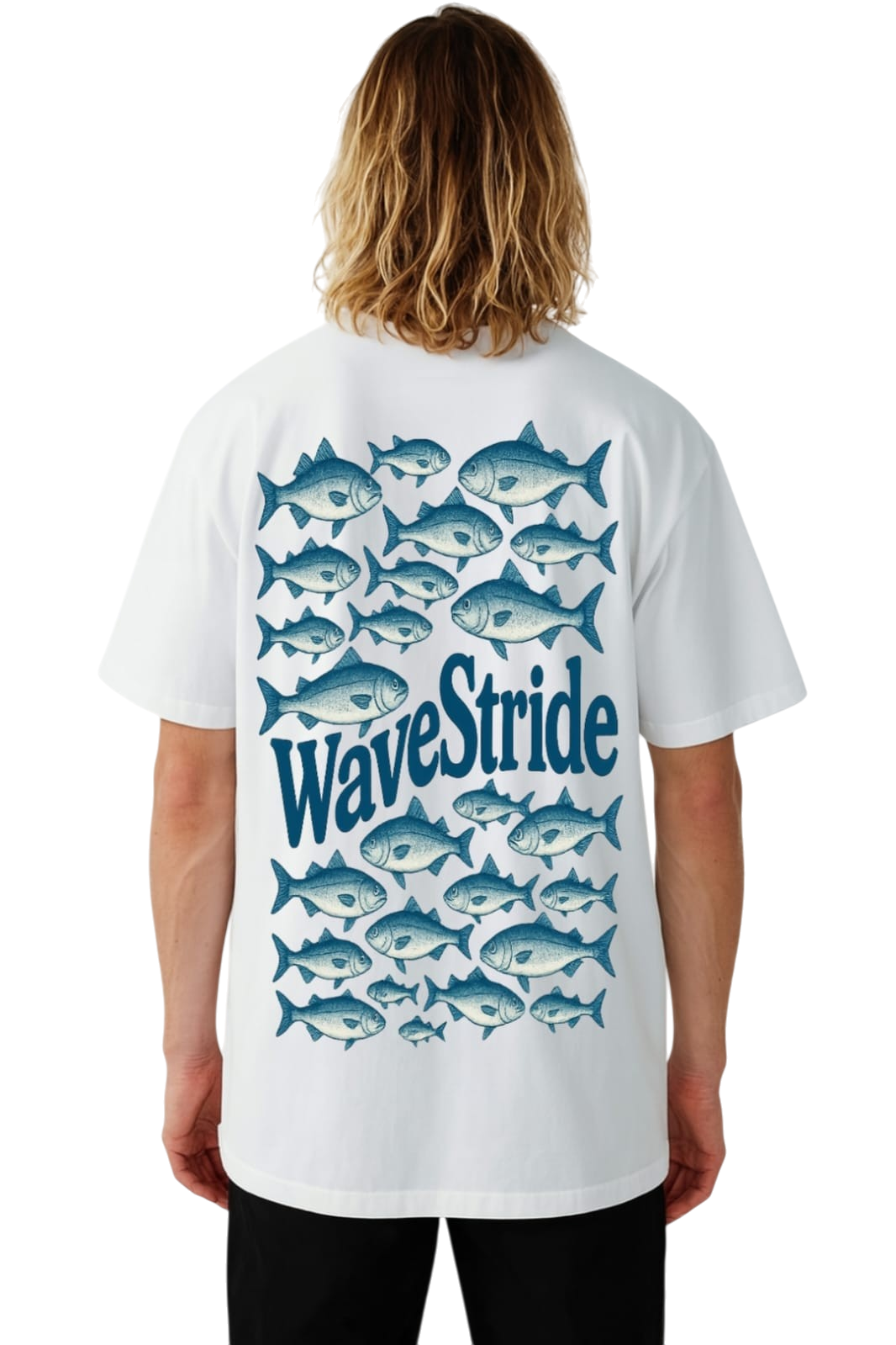 Camiseta Casual Corrente Azul WaveStride - Preto, Branco e Off-White