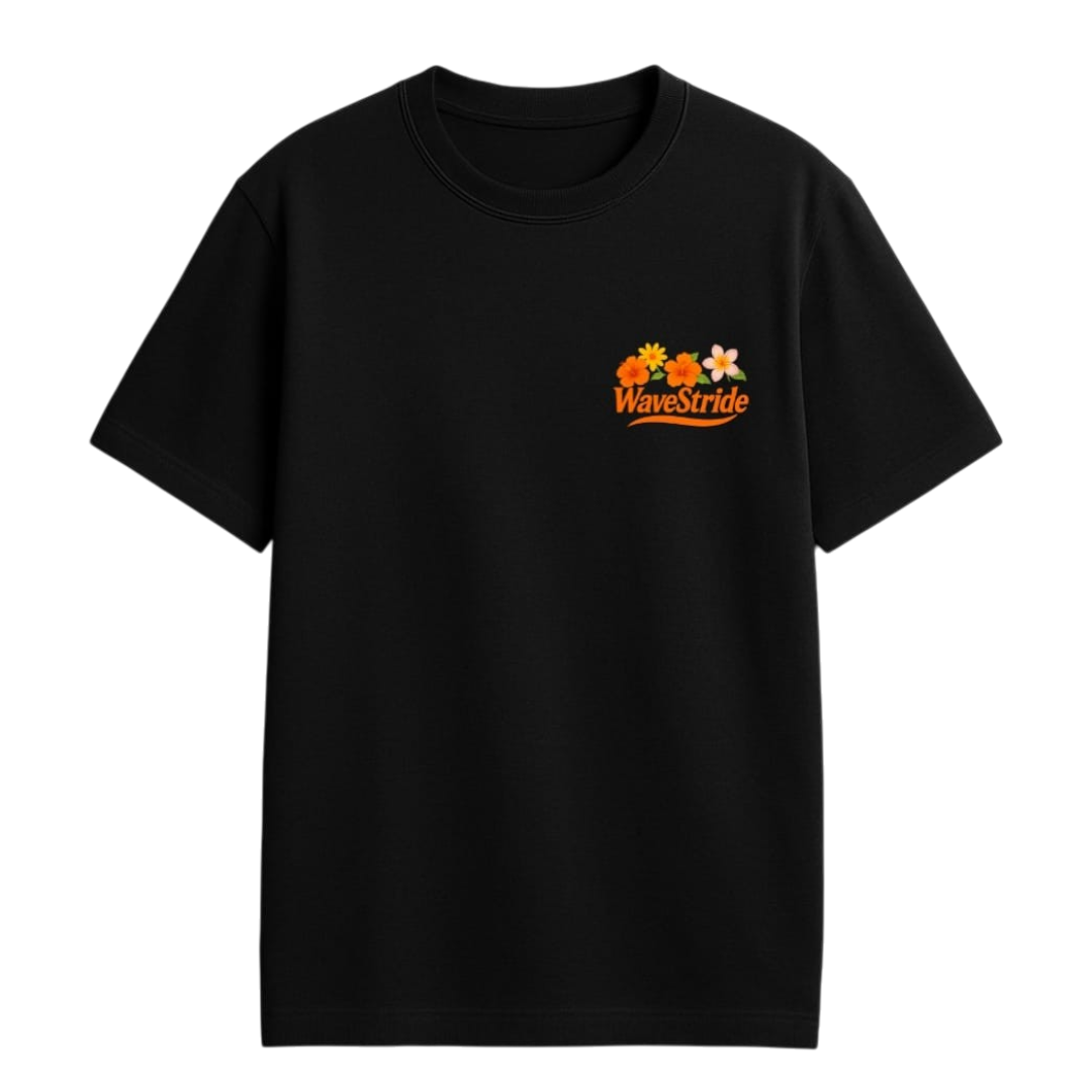 Camiseta Casual Wave Flowers WaveStride - Preto, Branco e Off-White
