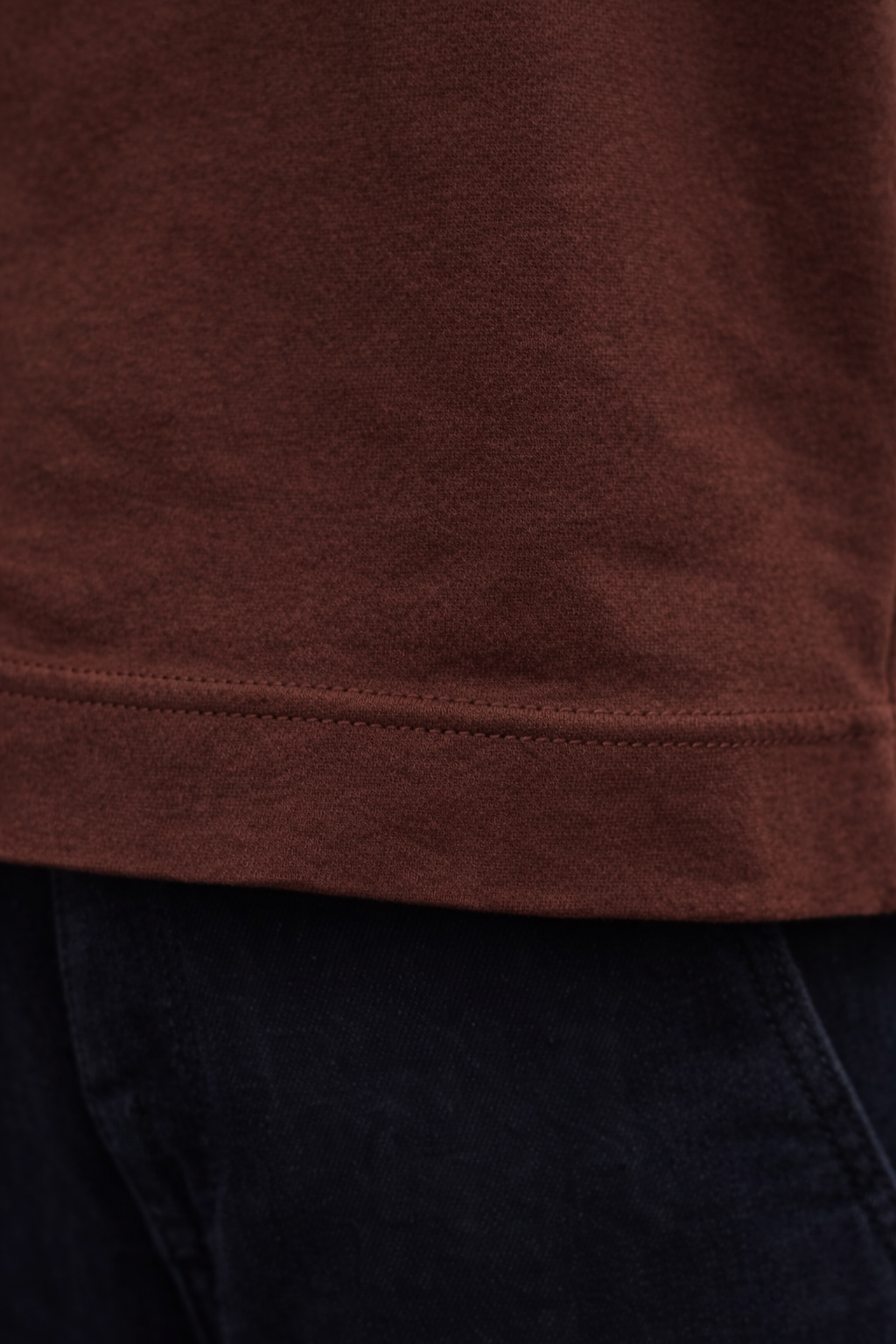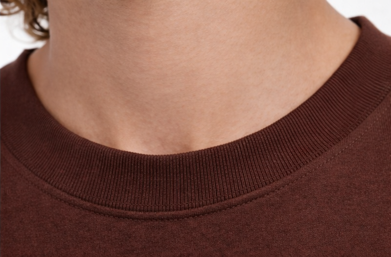 Gola de Autoridade: Acabamento em ribana canelada de 3cm que não esgarça, mantendo a estrutura da peça impecável após as lavagens.