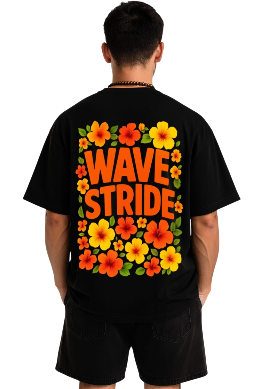 Camiseta Oversized Wave Flowers WaveStride - Preto, Branco e Off-White