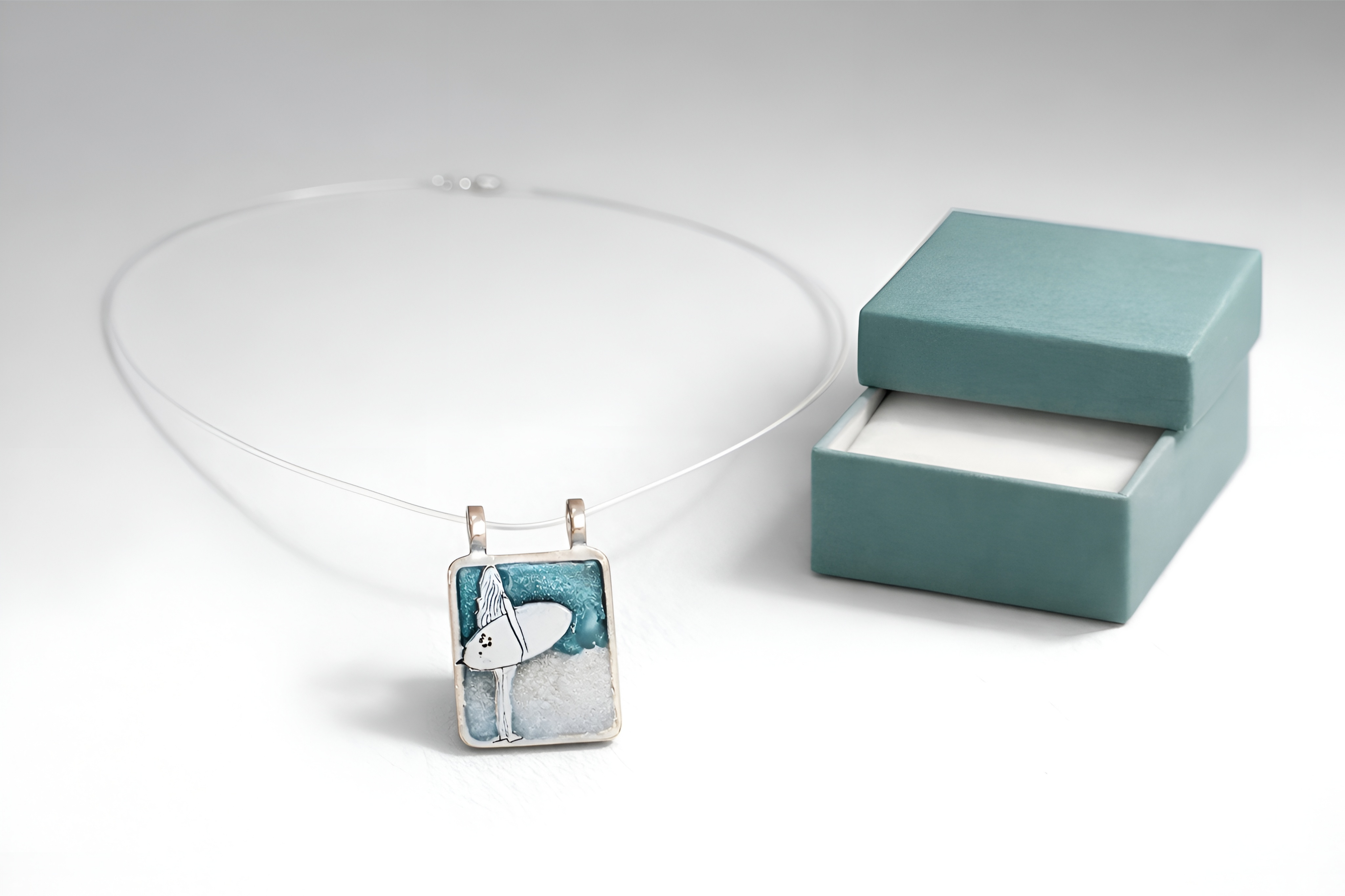 • Formato: Medalha quadrada com cena praiana resinada;