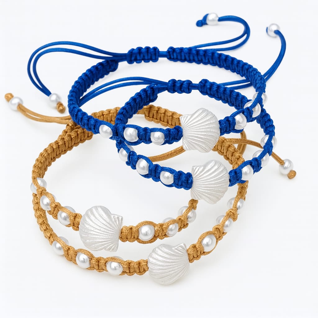 Feito em macramê artesanal, cada peça traz um pingente de concha com acabamento delicado, perfeito para quem ama a vida marinha e todo o encanto das ondas.