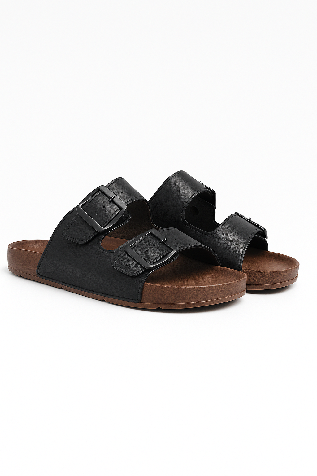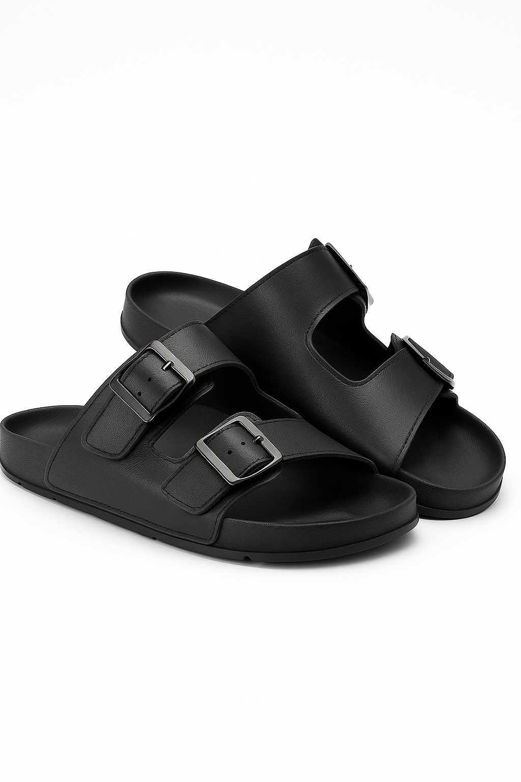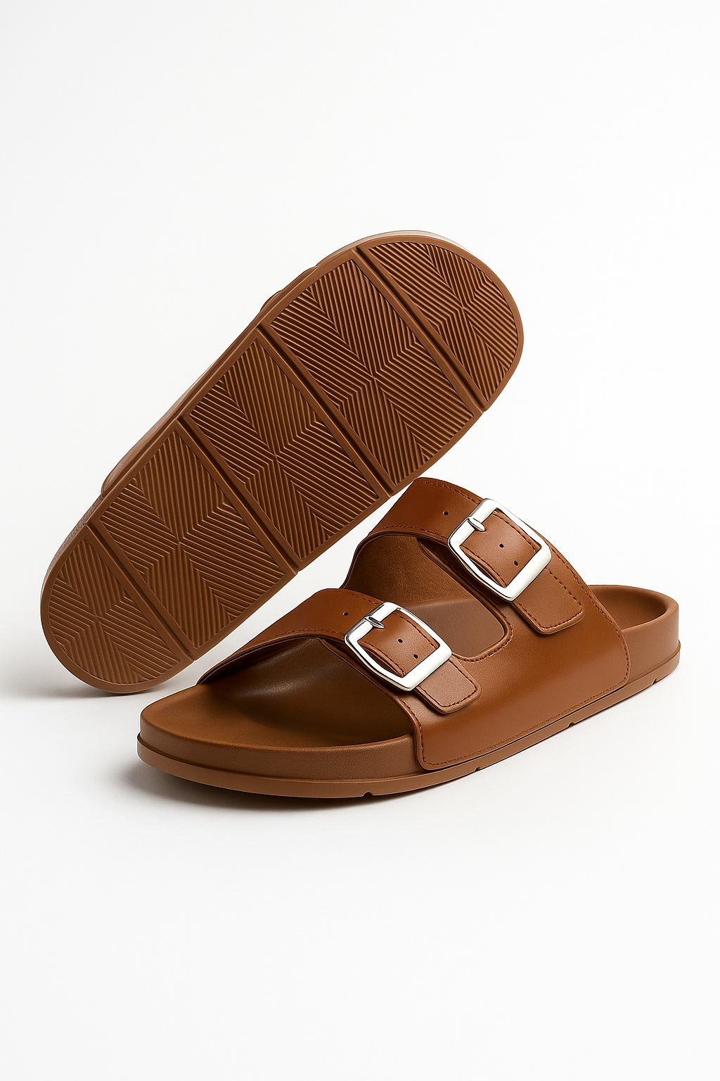 A sandália em couro ecológico é o equilíbrio ideal entre design clássico e o conforto absoluto. Além disso, é feita para quem carrega no estilo a leveza da liberdade e o respeito pelo que importa — o planeta. Com suas duas tiras largas ajustáveis e fivelas metálicas, o modelo oferece um ajuste firme e personalizado, adaptando-se perfeitamente ao formato dos pés.