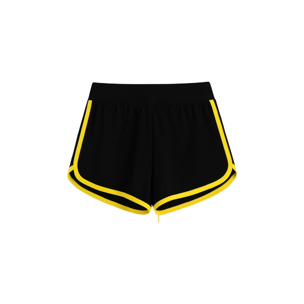 Confeccionado em tecido macio e leve, o shortinho possui modelagem bem curta, ideal para quem gosta de valorizar as pernas e manter total liberdade de movimento. O cós com elástico e ajuste em cordão verde garante praticidade e firmeza, enquanto o acabamento com viés contrastante deixa o visual ainda mais autêntico.