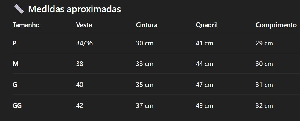 📦 Envio em até 7 dias úteis – Todas as peças passam por inspeção de qualidade antes de serem enviadas, garantindo que você receba seu short em perfeitas condições.